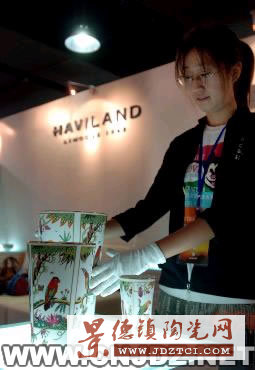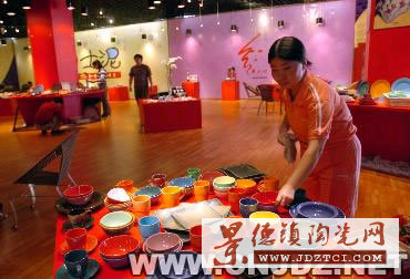 10月11日,景德鎮(zhèn)本地參展商在2005中國景德鎮(zhèn)國際陶瓷博覽會上布展。 10月12日,首屆中國景德鎮(zhèn)國際陶瓷博覽會將在江西省景德鎮(zhèn)市開幕,來自23個國家和地區(qū)及全國9大產(chǎn)瓷區(qū)的參展商、采購商、陶藝家20000多人將參加本次博覽會。