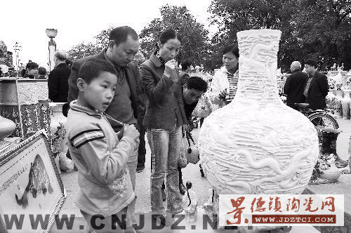 展銷會(huì)上,一只千球瓶直徑四十厘米、高六十厘米,參展價(jià)八萬(wàn)元,比其他