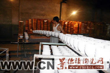 冬天室外溫度都達(dá)到了零下15攝氏度,石嘴山民族瓷業(yè)公司的一個職工還光著膀子干活。