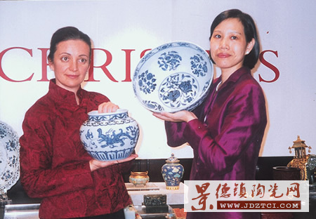 佳士得中國(guó)陶瓷及藝術(shù)品部專家曾志芬表示,該件明永樂青花折枝花果紋墩盌,盌身三十四厘米,在明永樂青花盌中很少有如此大件,最大的一件同類瓷器是在一九八九年以一千萬(wàn)元成交,該件瓷器有三十八厘米,是明青花大盌的最高拍賣紀(jì)錄。另外一件同類的明朝青花大盌,雖然已破爛了,在一九九四年的拍賣會(huì)上仍能以三百多萬(wàn)元拍得。其余另有三件同類瓷器分別藏于北京和臺(tái)北故宮博物院,以及大英博物館。