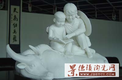 這件名為《蹉跎歲月》的陶瓷作品(如圖),雕塑的是一位背著挎包,系個“共大”草帽,坐在牛背上,諄諄善誘地教山村牧童讀書識字的女知青形象,在于謳歌當年廣大上山下鄉(xiāng)知識青年把文化知識帶到農(nóng)村、利用各種條件傳播文化知識掃除文盲的光輝業(yè)績。