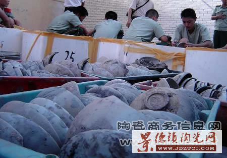 水下瓷器一出水,立即被逐個(gè)放入淡水中清洗,去除其中的泥沙,隨后給瓷器貼上小標(biāo)簽,注明出水的位置和時(shí)間,然后分類裝箱。運(yùn)到陸地上在室內(nèi)進(jìn)行脫鹽處理。