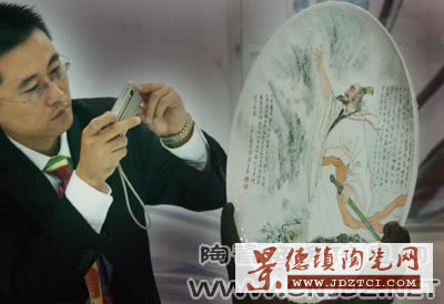 9月17日,一位觀眾在用數(shù)碼相機(jī)拍攝直徑53厘米的藝術(shù)骨質(zhì)瓷盤。該瓷盤是第八屆唐山中國陶瓷博覽會(huì)上最大的骨質(zhì)瓷盤。在第八屆唐山中國陶瓷博覽會(huì)上,唐山市各骨質(zhì)瓷企業(yè)紛紛拿出代表自己技術(shù)實(shí)力的精品絕活產(chǎn)品來展示,成為博覽會(huì)的一大亮點(diǎn)。