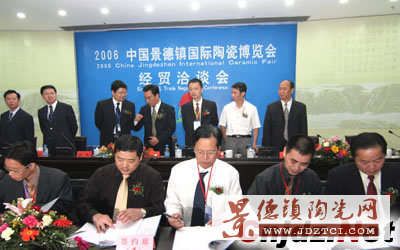 10月18日下午,2006中國景德鎮(zhèn)國際陶瓷博覽會經(jīng)貿(mào)洽談會在景德鎮(zhèn)市高新區(qū)舉行。本次經(jīng)貿(mào)洽談會簽約項(xiàng)目43個,其中內(nèi)資項(xiàng)目28個,總投資額28.35億元。