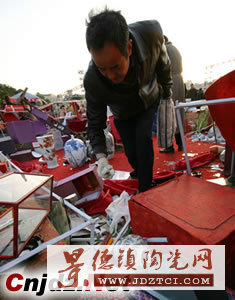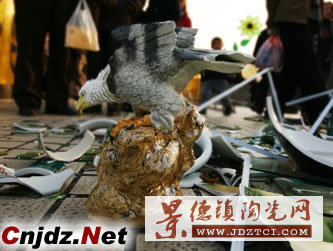 藝術(shù)品只剩下碎片。據(jù)展賣會的工作人員估計,損失數(shù)萬元。