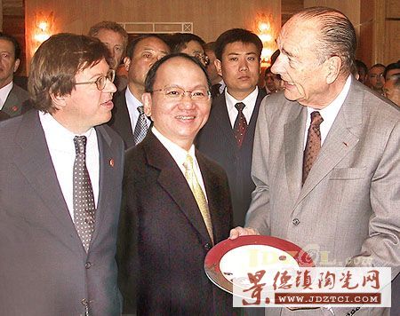 (左:柏圖總裁Michel Bernardaud;中:法藍(lán)瓷總裁陳立恒;右:法國(guó)總統(tǒng)Jacques Chirac)(資料圖片)