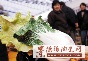 “像,真當(dāng)像……”昨天,在吳山廣場(chǎng)上舉辦的景德鎮(zhèn)瓷器展上,一棵約50厘米長(zhǎng),15公斤重的瓷質(zhì)“大白菜”以其逼真的造型和色澤贏得人們嘖嘖稱奇,不過這棵今年新開發(fā)的瓷白菜價(jià)格不菲,要價(jià)800元。隨著年末逼近,80多家客商帶著三萬多件景德鎮(zhèn)的瓷器擺開了賣場(chǎng),觀看和購買的市民人頭涌動(dòng)。