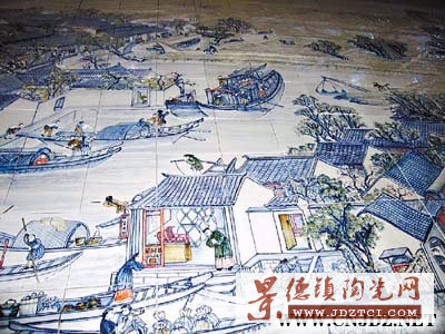 好一幅巨型的《盛世滋生圖》!只見(jiàn)一塊塊剛出窯的瓷板上浮現(xiàn)出一幅清乾隆年間古蘇州城商旅如織、船楫相連的繁華畫卷。記者昨天在中山大學(xué)潮州陶瓷歷史文化研究院獲悉,歷經(jīng)三年時(shí)間,仿自清代宮廷畫師徐揚(yáng)的名作《盛世滋生圖》的巨型浮雕瓷壁畫即將問(wèn)世,這幅瓷壁畫長(zhǎng)達(dá)136米,高4米,由3800塊瓷版拼接而成,面積達(dá)530平方米,將原作放大了100倍(下為局部圖)。