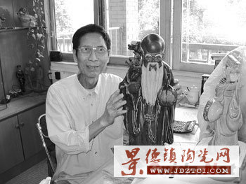 圖為中國工藝美術(shù)大師黃松堅對幾十年前創(chuàng)作的“壽星公”傾注了深厚的感情,溢于言表。