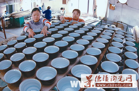 焦作華泰陶瓷有限責(zé)任公司與美國天山公司的成功合作,實(shí)現(xiàn)了生產(chǎn)與銷售的優(yōu)勢(shì)互補(bǔ),吸引來了美國沃爾瑪?shù)却罂蛻,生產(chǎn)、銷售、出口十分順暢。今年第一季度,該公司工業(yè)總產(chǎn)值、出口量、創(chuàng)匯同比分別增長(zhǎng)74%、45%和66%,完成出口創(chuàng)匯432萬美元,實(shí)現(xiàn)了首季開門紅。圖為該公司彩烤生產(chǎn)車間工人正在生產(chǎn)。