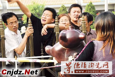 5月21日,上百市民圍擠在甘肅省博物館廣場(chǎng)的柵欄前,和柵欄內(nèi)手舉陶瓷工藝品的商販們討價(jià)還價(jià),場(chǎng)面熱鬧非凡。據(jù)了解,在甘肅省博院內(nèi)廣場(chǎng)上舉辦的陶瓷展銷會(huì)因5月22日就要撤展,商販們?yōu)榱嗽诔氛骨氨M可能多地售出瓷器,采取低價(jià)拋售的策略吸引市民購(gòu)買,于是就出現(xiàn)了市民“瘋搶”的一幕。