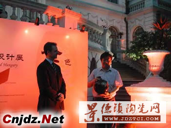 設(shè)計(jì)展開幕當(dāng)天,為了表達(dá)中匈人民的友誼,匈牙利駐上?傤I(lǐng)事海博先生專程出席了揭幕儀式,上海工藝美術(shù)行業(yè)協(xié)會(huì)會(huì)長沈國臣向海博總領(lǐng)事贈(zèng)送了《古塔》瓷器一件,海博則向中方贈(zèng)送了瓷器《橋》。