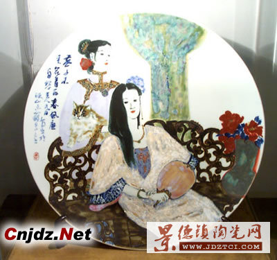 “李菊生陶瓷藝術(shù)館”就在“中華陶藝村”他家的別墅樓中,占據(jù)了兩層樓面、六個(gè)展室。此次共有51件藝術(shù)陶瓷作品展出,大部分是他首創(chuàng)的高溫顏色釉裝飾人物藝術(shù)瓷,也有青花、釉里紅綜合裝飾藝術(shù)瓷,器型是瓷瓶、瓷盤、瓷板,還有部分粉彩藝術(shù)瓷瓶等。
