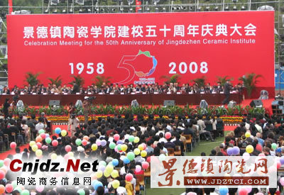 連日來(lái),裝點(diǎn)一新的景德鎮(zhèn)陶瓷學(xué)院湘湖新校區(qū)內(nèi)彩球迎風(fēng)飄揚(yáng),歡聲笑語(yǔ)不斷,來(lái)自海內(nèi)外的各位嘉賓歡聚一堂,共慶景德鎮(zhèn)陶瓷學(xué)院建校50周年。10月29日上午,景德鎮(zhèn)陶瓷學(xué)院建校50周年慶典大會(huì)在湘湖新校區(qū)田徑場(chǎng)隆重舉行。國(guó)家教育部總督學(xué)顧問(wèn)、原副部長(zhǎng)張?zhí)毂,中科院院士郭景坤,中?guó)輕工業(yè)聯(lián)合會(huì)副會(huì)長(zhǎng)楊自鵬,江西省委教育工委書(shū)記、省教育廳廳長(zhǎng)虞國(guó)慶,中國(guó)陶瓷工業(yè)協(xié)會(huì)理事長(zhǎng)劉堯、中國(guó)照明協(xié)會(huì)會(huì)長(zhǎng)王錦燧、中科院上海硅酸鹽研究所所長(zhǎng)羅宏杰、華南理工大學(xué)黨委書(shū)記王迎軍、江西省教育廳副廳長(zhǎng)王占銘、省科技廳副廳長(zhǎng)楊貴平、省人事廳副廳長(zhǎng)裴菲,景德鎮(zhèn)市領(lǐng)導(dǎo)許愛(ài)民、李放、陳興超、王力農(nóng)、馮林華和景德鎮(zhèn)陶瓷學(xué)院名譽(yù)院長(zhǎng)秦錫麟,景德鎮(zhèn)陶瓷學(xué)院院長(zhǎng)周健兒以及各界來(lái)賓、師生代表共4000余人參加了慶典大會(huì)。景德鎮(zhèn)陶瓷學(xué)院黨委書(shū)記肖任賢主持慶典大會(huì)。
