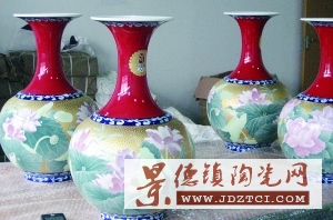 在公司的禮品陳列室,記者見到了這套驚艷四座的奧運禮品瓷。兩款瓷品一樽為“花開富貴瓶”,另一樽為“同心永連瓶”,高43.5厘米,直徑為27厘米,古典的“天球賞瓶”器型端莊典雅。前者瓶身以牡丹入畫,雍容華貴,后者則以蓮花為主圖,清麗脫俗,駐足觀瞻,委實令人心醉其間。