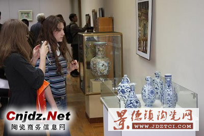 為慶祝中華人民共和國(guó)建國(guó)60周年,“白金——永恒的典藏”中國(guó)景德鎮(zhèn)瓷器展16日在哈薩克斯坦阿拉木圖市的卡斯捷耶夫國(guó)家藝術(shù)博物館開幕。