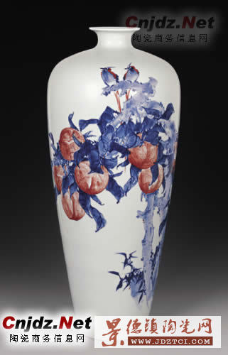 陸如 《萬(wàn)壽圖》青花釉下彩瓷瓶