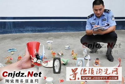 7月15日,江西省景德鎮(zhèn)市公安局陶科園分局民警清點(diǎn)收繳的法藍(lán)瓷。
