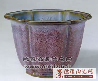 玫瑰紫釉葵花花盆正是北宋時期的鈞瓷作品,它高15.8厘米,口徑22.8厘米,足徑11.5厘米,花盆呈葵花形,盆身裝飾著六條外凸里凹的線條,把花盆均勻地分成六瓣?duì),宛如一朵盛開的葵花,富麗典雅,精美絕倫。那么,一件瓷器的內(nèi)外雙色,到底是怎么燒制出來的呢?