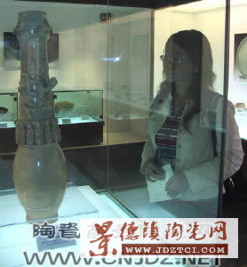 觀眾在觀賞景德鎮(zhèn)官窯宋代影青板依罐