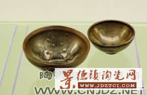 “宋代黑釉兔毫花盞”(一對)建窯瓷。宋代的陶瓷工藝進入到鼎盛時期,宋瓷除白、青兩大類外,在當時的福建建甌、建陽等地創(chuàng)燒成功黑釉瓷器,主要品種有黑釉茶盞這種胎呈淺紫黑,厚重堅實的瓷器。這種細毛狀紋因發(fā)色不同,又稱“金兔毫”、“銀兔毫”、“黃兔毫”。宋徽宗趙佶因定瓷芒口而棄定瓷用汝瓷,又在民間征集宮廷用瓷,黑釉茶盞被選中,作為進貢御瓷。這對宋代建窯“黑釉兔毫盞”為典型的福建建窯兔毫盞瓷,釉色黑而光亮,口沿一周釉色呈茶色,伴有流淌和細密工整的兔毫紋,脫土黑色,極為珍貴。