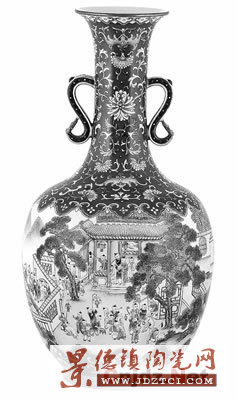 此件清乾隆粉彩春燈嬰戲雙耳瓶為乾隆粉彩的代表作品,無論從色彩、器形、工藝上都有很大的特點,尤其在文化內涵上更是反映了封建帝王希望“百子千孫”、“江山永固”的思想。同時也反映了千百年來勞動人民盼望有子傳宗接代的良好愿望。此瓶細長頸,撇口,耳作如意形,喻“平安如意”,碩腹,平底,矮圈足,口及耳描金,頸至肩及腹底以如意云頭為邊,在紅地上畫纏枝番蓮間飾蝙蝠。腹部彩繪高山流水,庭舍樓臺,配以樹石花草,眾嬰孩嬉戲其間,或舞龍或提燈,足邊描回紋,器內及底均施湖綠色釉,底描紅書“大清乾隆年制”六字篆款。
