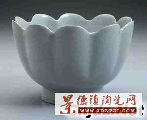 汝窯蓮花式溫碗 以蓮花或蓮瓣作為器物之紋飾及造型,隨佛教之傳入而盛行,爾后更取其出泥不染之習(xí)性,寓意廉潔,廣為各類(lèi)器所采用。本器狀似未盛開(kāi)蓮花,線(xiàn)條溫柔婉約,高雅清麗。原器應(yīng)與一執(zhí)壺配套,為一溫酒用器,晚唐至宋所常見(jiàn)。 汝窯曾為宮中用器,因采覆燒的方式,故口有缺陷,因而有「宮中命汝州燒造青瓷」之舉,汝窯之入選,支燒滿(mǎn)釉應(yīng)是原因之一。支燒另一用處為防止器底塌陷,汝窯所用支釘細(xì)小,所留釘痕狀似芝麻,器底五支釘痕即是,也就是俗稱(chēng)的「芝麻釘」。釉面細(xì)碎紋路,更有「蟹爪痕」之美名。 蓮花溫碗,以其典雅造型,溫柔不透明釉色,在傳世不多之汝窯器中,更顯珍貴。