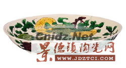 上繪畫圖案,因?yàn)橹T彩中沒有紅色,所以稱“素三彩”。