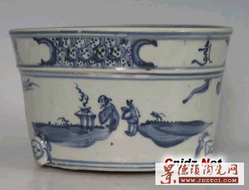 名    稱: 明正德 景德鎮(zhèn)窯青花山水人物紋三足爐