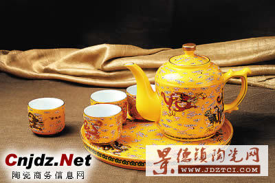 2007年,北京盛世昌南陶瓷文化有限公司在恭王府管理中心的支持與協(xié)作下,成功研發(fā)出中國皇家外事禮品珍瓷――黃釉浮雕金五彩云龍茶具系列,使象征中國頂級工藝的皇家瓷,再一次呈現(xiàn)出令世人矚目的光輝。珍瓷正是以恭王府所使用的陶瓷用品為文化及工藝藍本,依據(jù)恭王府以及江西昌南(景德鎮(zhèn)舊稱)歷代官窯所存的大量史料及民間傳說,在深入挖掘、整理中國皇家陶瓷文化與工藝技法的前提下,輔以現(xiàn)代審美設計和加工工藝制成的。