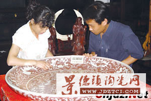 近日,中國規(guī)模最大的專業(yè)漆器生產(chǎn)廠家、位于朝陽區(qū)小紅門的京城著名老字號(hào)企業(yè)北京金漆鑲嵌有限責(zé)任公司即將搬遷,在清理五十多年的老庫底時(shí),發(fā)現(xiàn)了一件直徑92厘米的釉里紅大瓷盤。此盤胎正釉潤,盤邊福祿壽喜,盤芯為吉祥象圖案,寓意吉祥。據(jù)業(yè)內(nèi)專家介紹,在燒制過程中,平板類交瓷盤難度極大,直徑這樣大的瓷盤燒制難度就更大了,實(shí)屬難得一見。